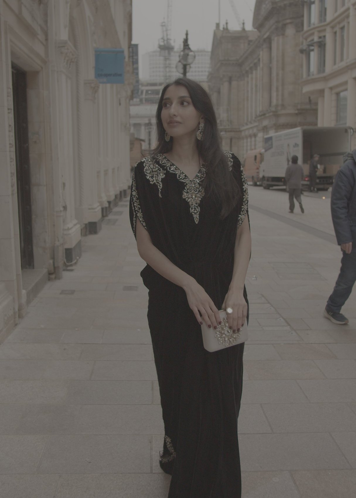Hi! I wanted to share a little bit about my inspiration behind the autumn winter collection. When I think about Autumn and Winter my mind instantly shifts to velvets. Velvet has an inviting and comfortable feeling to it invoking an old world charm. Synonymous with luxury it’s also incredibly practical as it’s soft warm texture makes it perfect for insulation. My idea was to design velvet capsule outfits that are effortlessly chic and easy to style for a capsule collection. Whether you are aiming for a classic capsule look with the Ayla set or more of a formal look with the Hajrah kaftan, velvet adapts beautifully giving you a cozy and glamorous look. I hope you enjoy this collection!